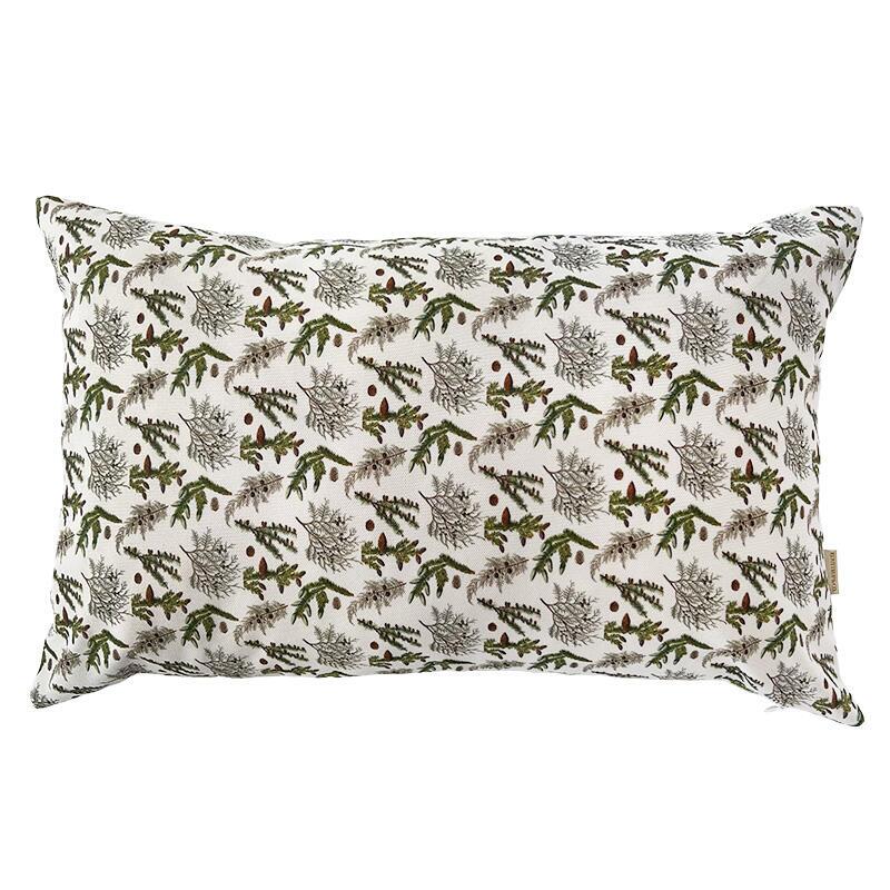 Bring the forest's peace and beauty straight into your home with this pillow cover featuring a pattern of pine trees and cones.