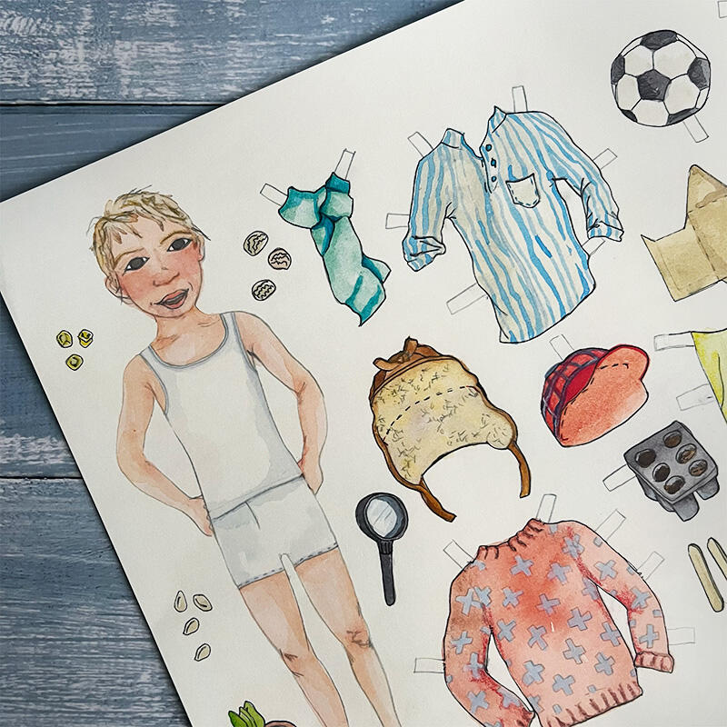 Nuket ja vaatteet on helppo leikata irti ja leikki voi jatkua yhä uudelleen. Jokainen pieni yksityiskohta on huolellisesti suunniteltu luomaan nostalginen ja taiteellinen kokemus, joka kunnioittaa klassisia pukuleluja leikkisällä vivahteella.