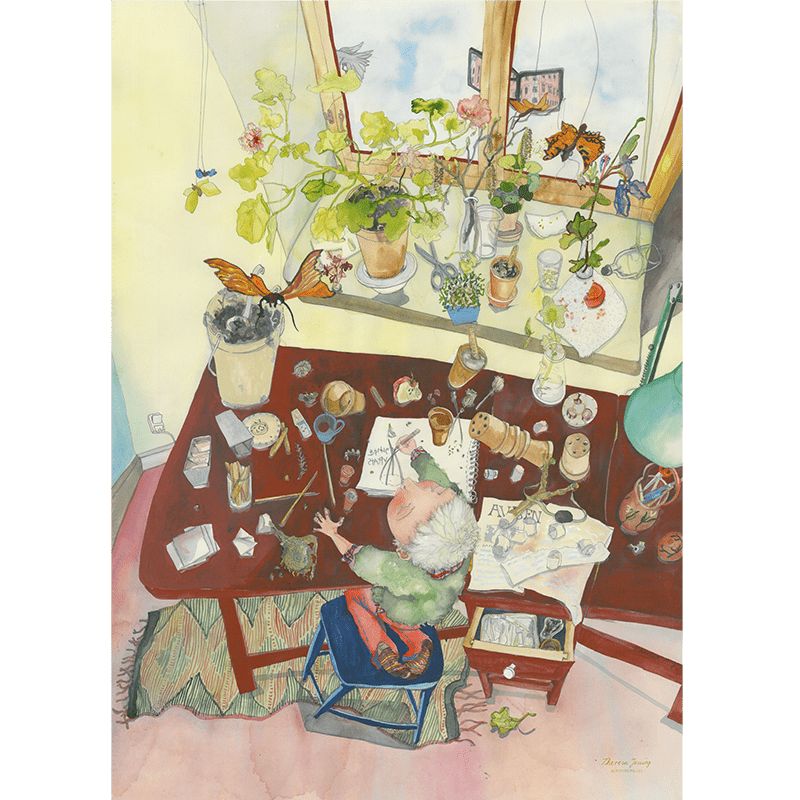 Un moment paisible près de la fenêtre. Dans Nature Study, Theresa Jessing a créé une scène sensible et pleine d'atmosphère : un garçon est plongé dans son carnet, entouré de plantes et de lumière naturelle. C'est une image de curiosité et de présence – un hommage discret à l'émerveillement de l'enfance et aux petits détails de la nature.
