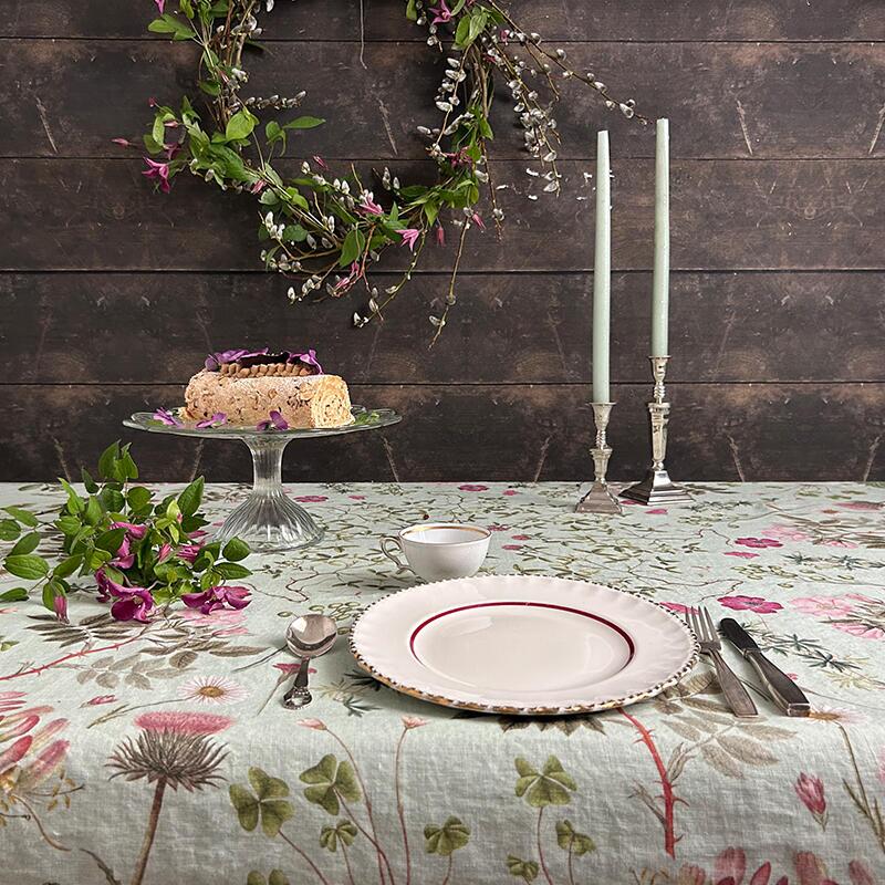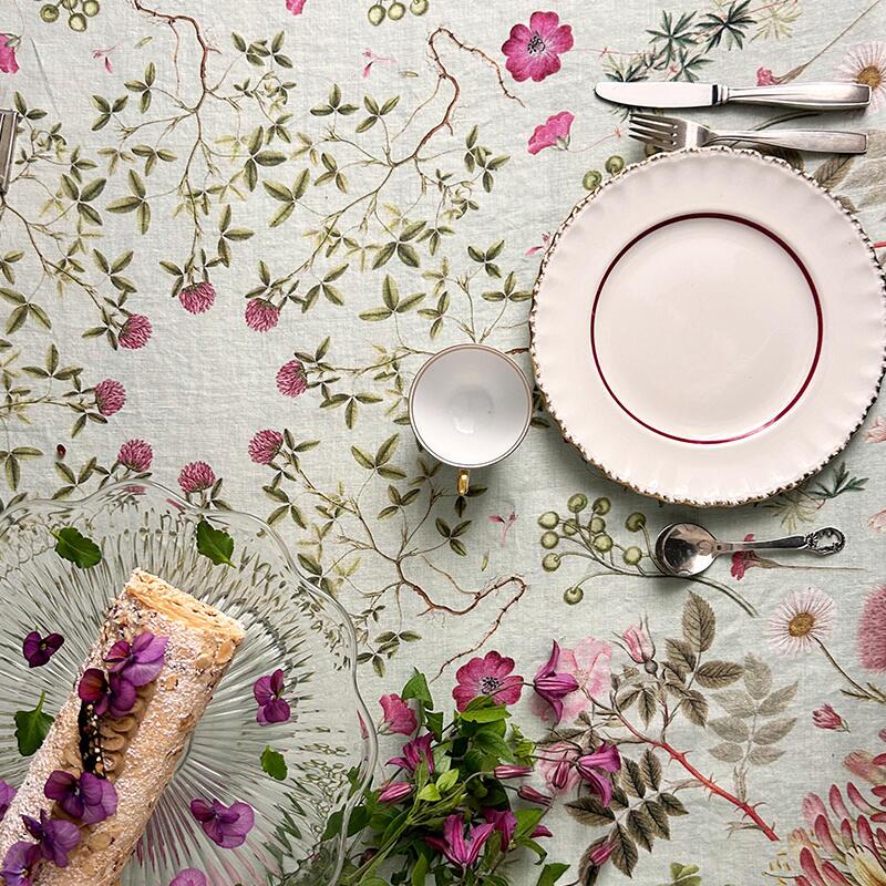 Dek een stijlvolle en elegante tafel met prachtige motieven van wilde planten uit het botanische atlas Flora Danica.
