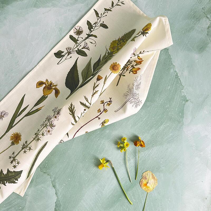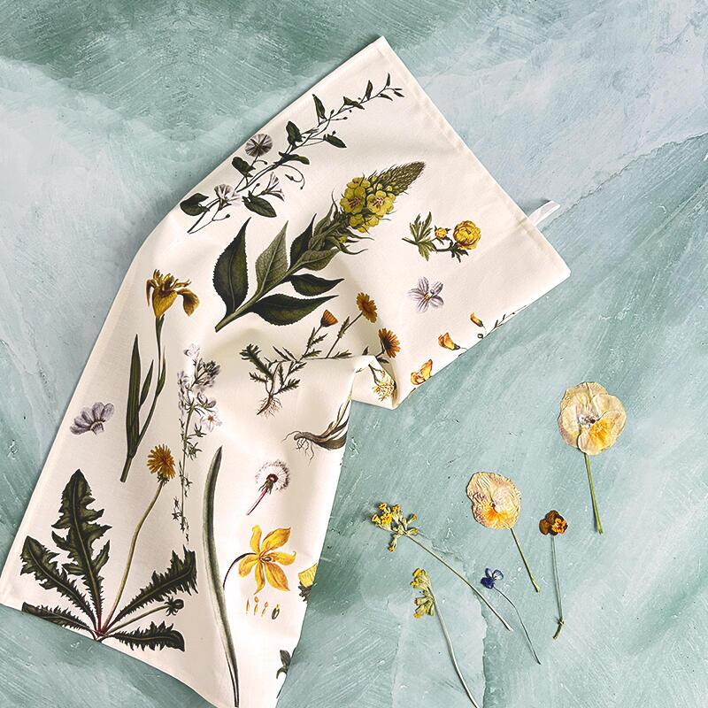 Inspireret af de ikoniske illustrationer fra det botaniske atlas Flora Danica forener viskestykket historisk finesse med varme, solgule nuancer. De fine, blomstrende motiver bringer et strejf af forår, lys og liv ind i hverdagen – og skaber en rolig og sanselig stemning i dit køkkenrum.