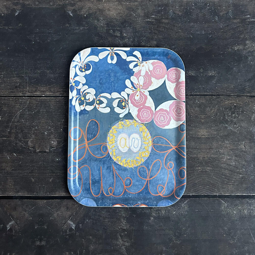 Oplev kunst og funktionalitet i ét med denne smukke bakke dekoreret med et vidunderligt motiv af den svenske kunstner Hilma af Klint. Et unikt kunstværk, der bringer Hilma af Klints karakteristiske farver og former direkte ind i dit hjem. Perfekt til dig, der elsker moderne kunst og stilfuld funktionalitet.