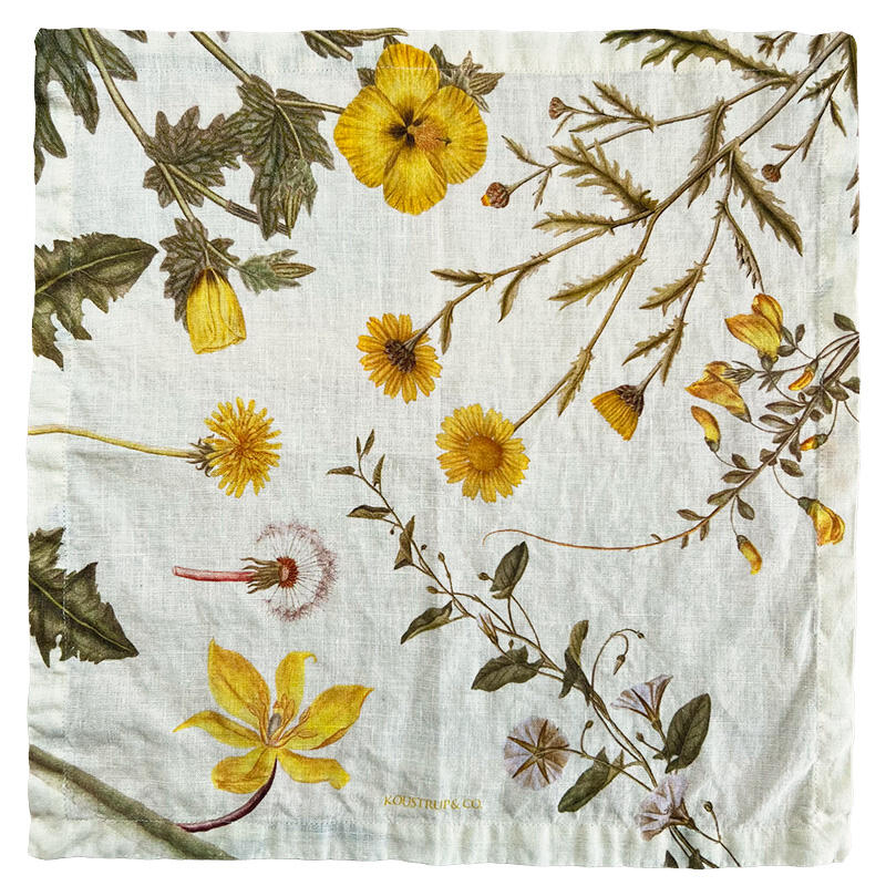 Blød og eksklusiv stofserviet i naturlig dyrket hør med gule blomster fra det botaniske atlas Flora Danica. Med denne stofserviet af hør er der mulighed for at dække et fint bord, der også giver gæsten en mere behagelig oplevelse. Hørservietten kan vaskes og genbruges flere gange.